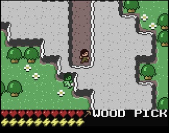 Gráficamente, Minicraft tiene un aspecto aún más simple que el del juego original. Los escenarios y personajes apenas se representan con unos pocos píxeles y colores, pero los diseños son bastante claros, como los objetos de inventario, que podrás seguir reuniendo a través de la mesa de trabajo (Workbench)